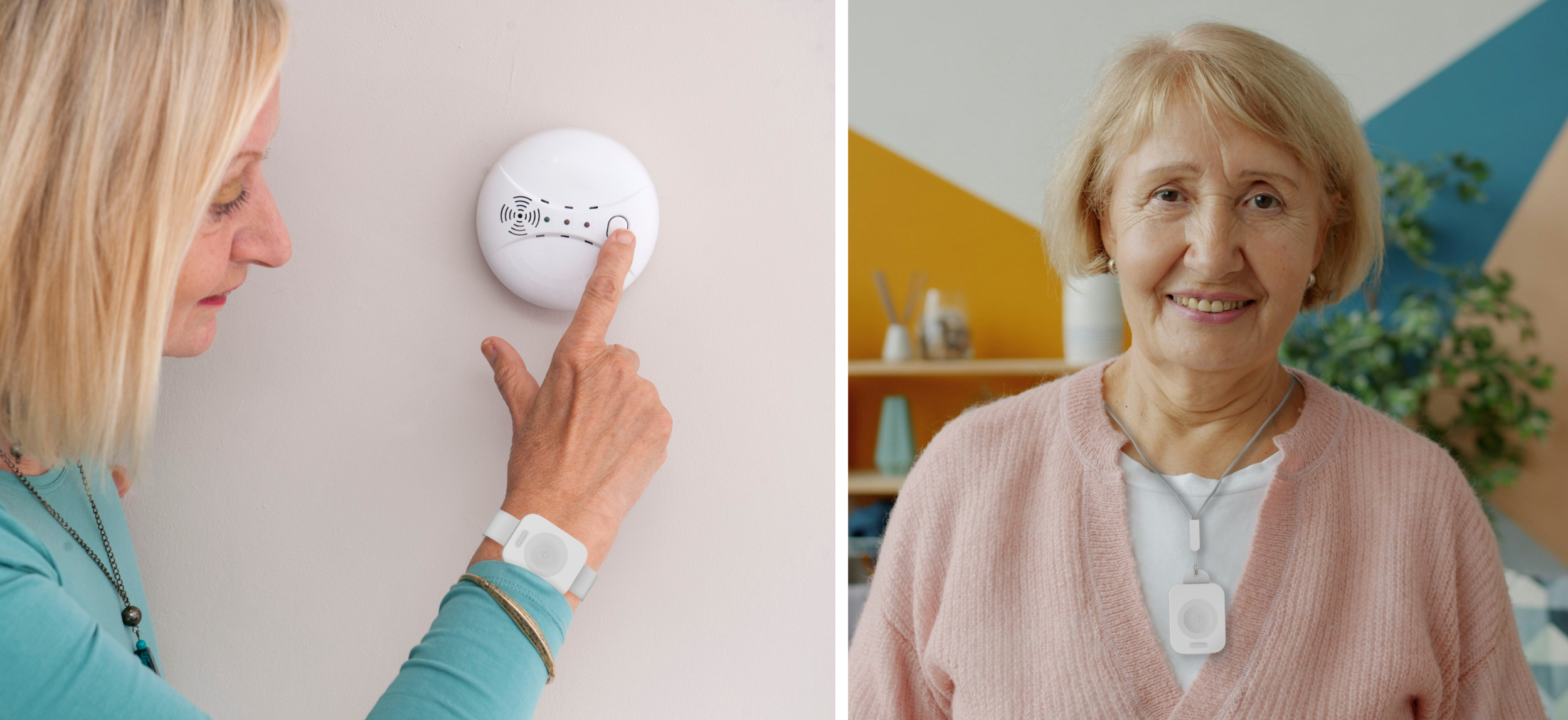 Yn gyfforddus ac yn gynnil, gellir gwisgo’r CairWear ar yr arddwrn neu o amgylch y gwddf, gan alluogi pobl i symud o gwmpas eu cartref gyda hyder, gan wybod bod help bob amser ar gael os oes ei angen.